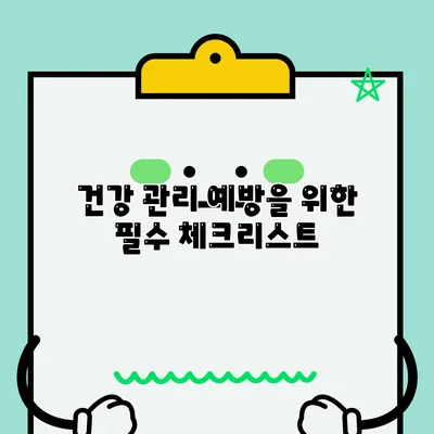 예방의 중요성 오늘날의 바쁜 생활 속에서 건강을 유지하는 것은 필수적입니다. 건강 관리가 단순한 치료나 약물 복용을 넘어, 예방의 중요성이 강조되고 있습니다. 예방적 건강 관리는 질병을 조기에 발견하고, 건강한 생활 습관을 통해 보다 나은 삶의 질을 유지하기 위한 방법입니다. 건강 관리 체크리스트 건강 관리를 위해 꼭 필요한 체크리스트는 다음과 같습니다: 정기적인 건강 검진 균형 잡힌 식사 … Read more