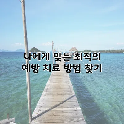 다양한 예방 치료 방법이 있으며, 이를 통해 건강을 유지하고 질병 발생 가능성을 줄일 수 있습니다. 다음은 개인 맞춤형 예방 치료 방법의 몇 가지 예시입니다.